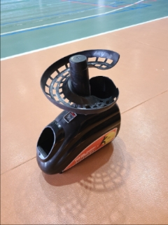 今日はテニスの簡易球出し機を持ち込んで試してみましたが、テニスボールより若干大きく搬送も出来ず使えませんでした(泣)